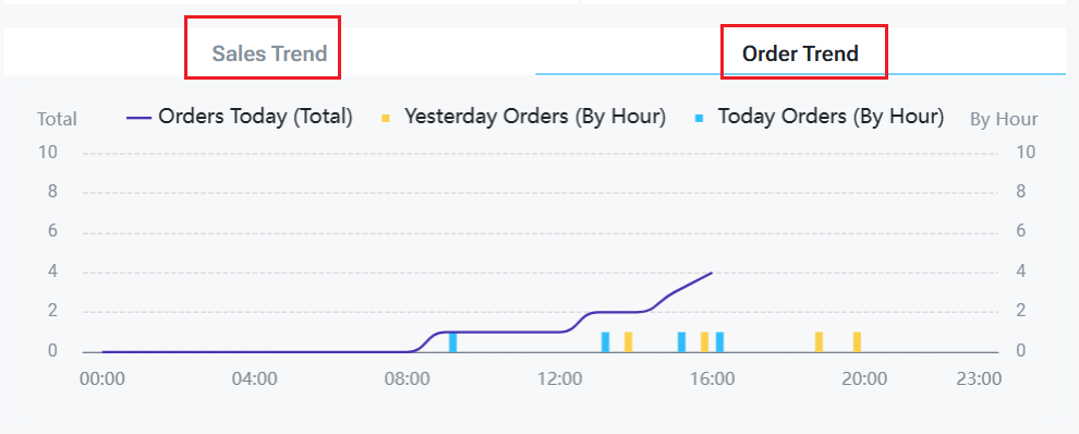 - Switch between "Sales Trend" and "Orders Trend";
