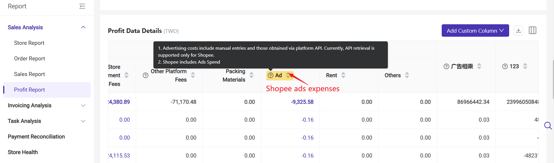 4. If you want to add ads, rents, packaging material fees in this table, please check How to add other fees for store profit analysis?