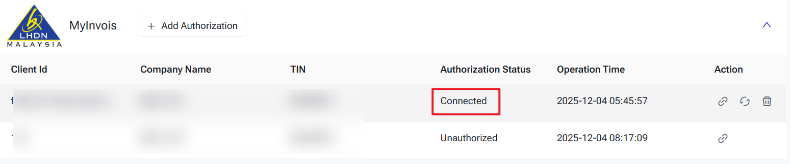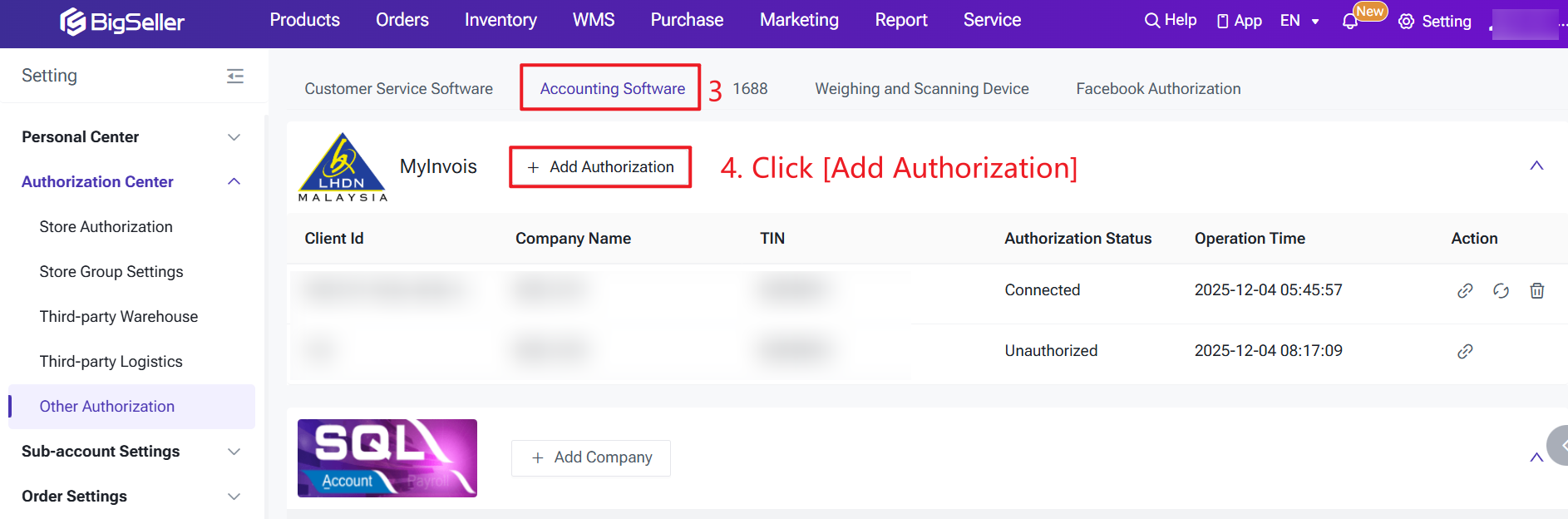 Step 2: Select Accounting Software > MyInvois and click Authorize.