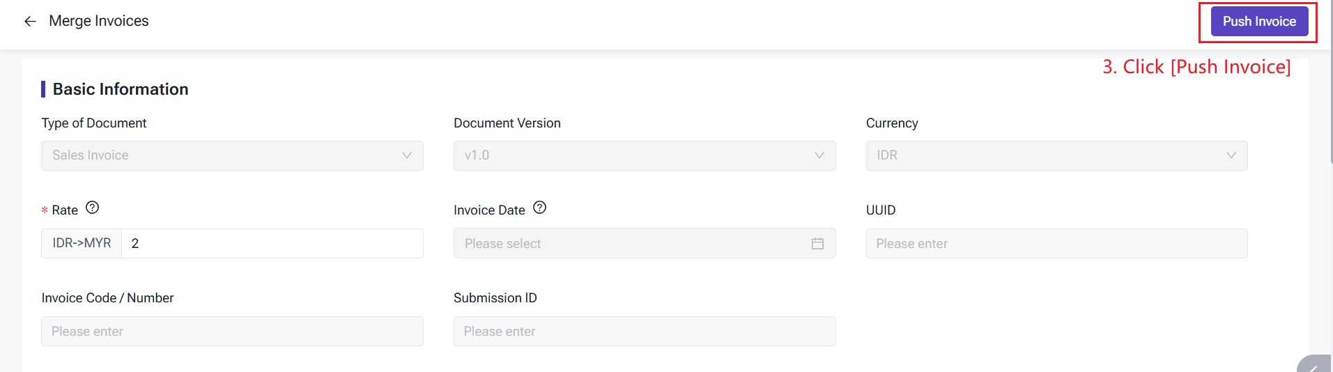 2. When merging invoices, you do not need to enter the buyer's information. The system will automatically use General Public as the default company name.