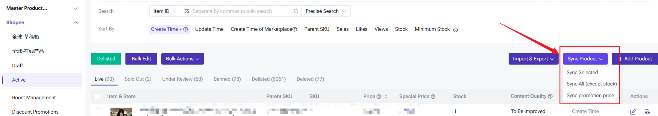 3. Sync Promotion Price means synchronizing the prices of ongoing promotions(For Shopee Active products only).