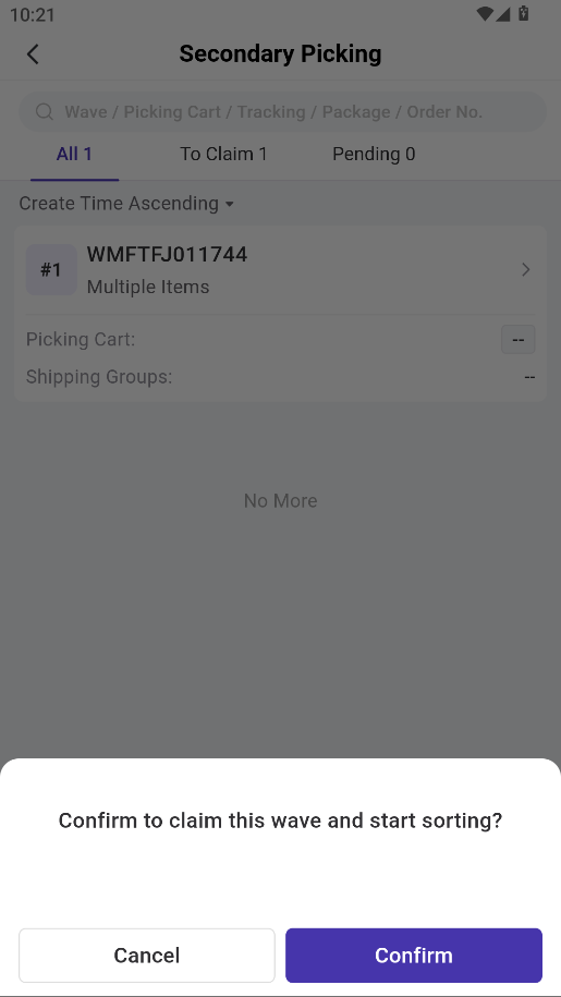 On the Wave Picking page, you’ll see waves under To Claim (not yet claimed by any operator) and Pending (already claimed by your account).