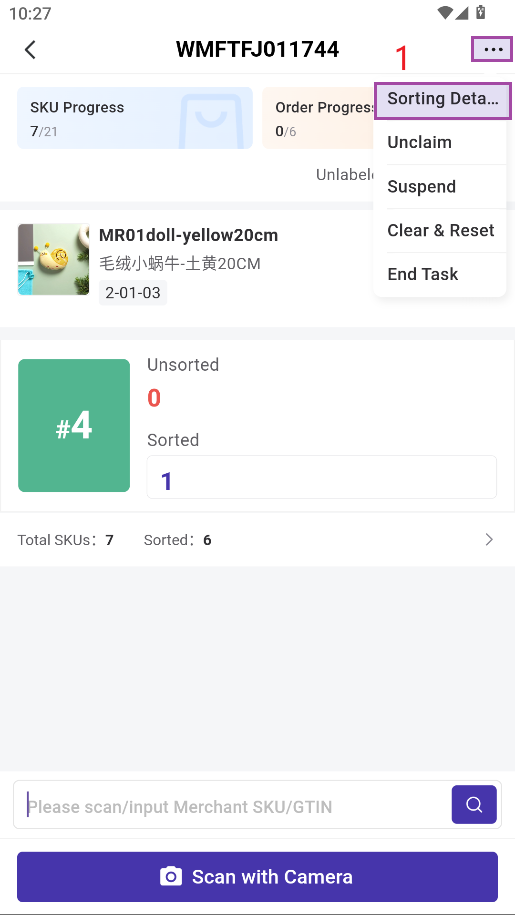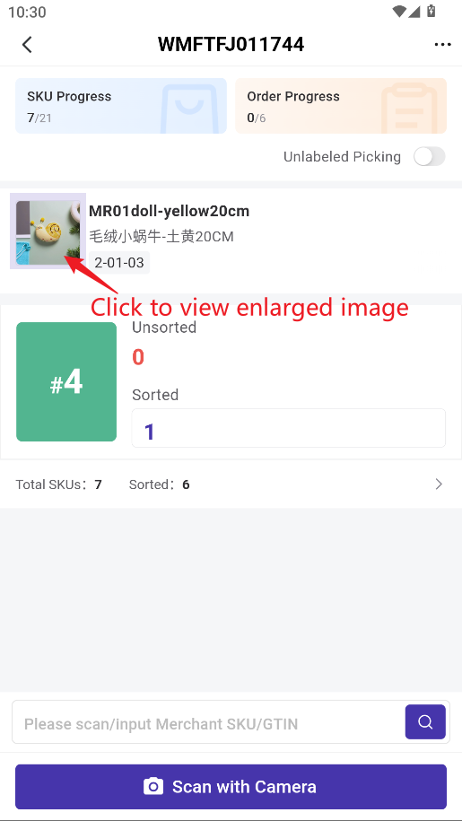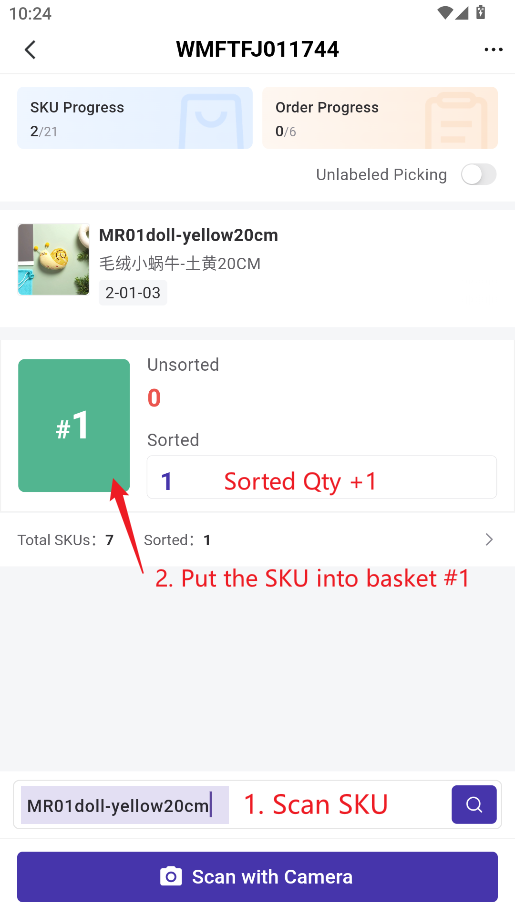 3) Continue scanning the next SKU and repeat the above steps until all SKUs are sorted.