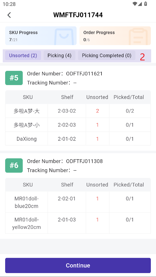 3) Once one SKU is picked, the next SKU will automatically be shown.