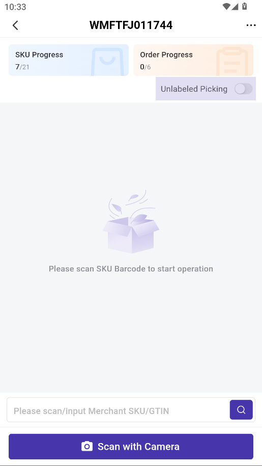 The Unlabeled Picking Mode is designed for scenarios where some SKUs are labeled, and others are not.