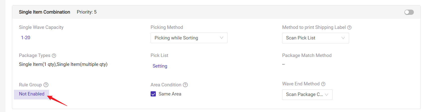 Step 2: Select the wave type you want to enable Rule Group for (e.g. Single Item Combination / Multiple Items).