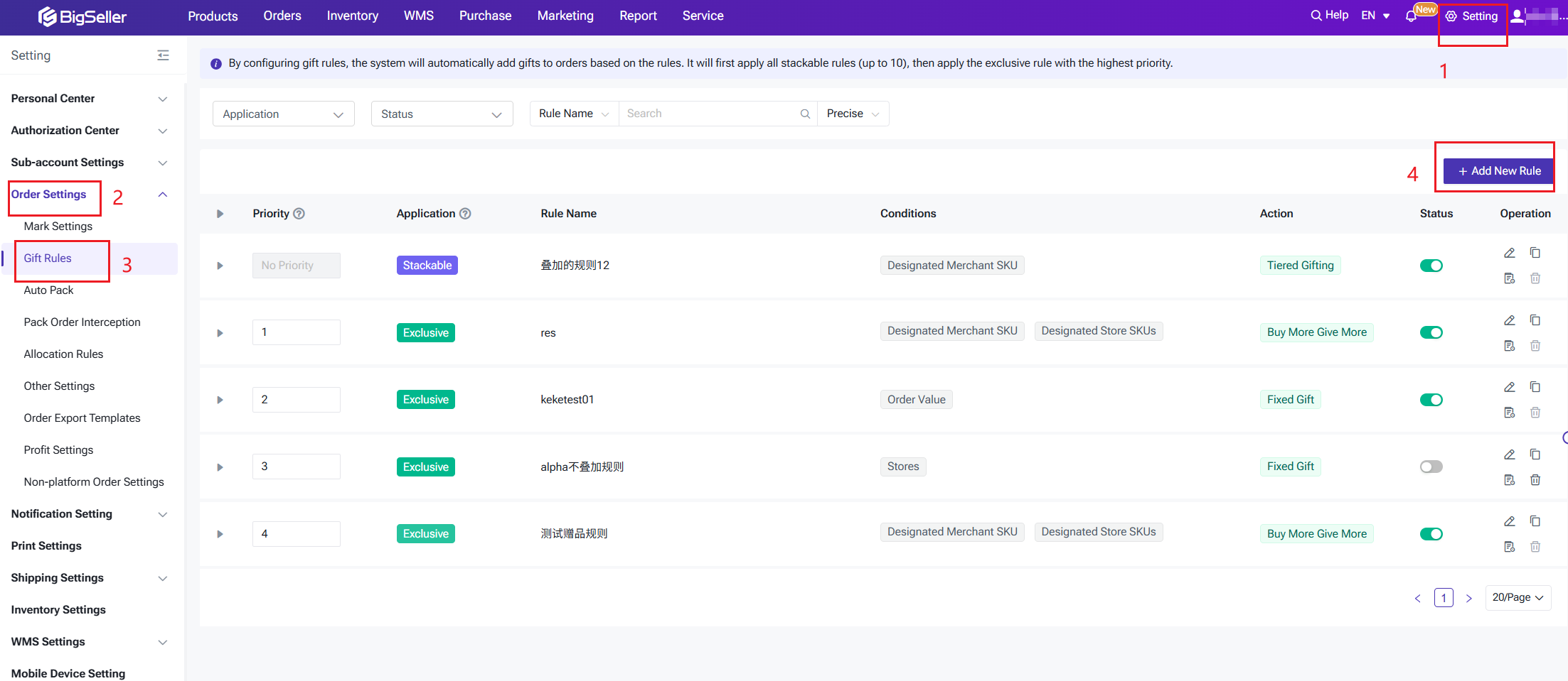 Step 1: Go to setting > Order Settings >Gift Rules > Add New Rule