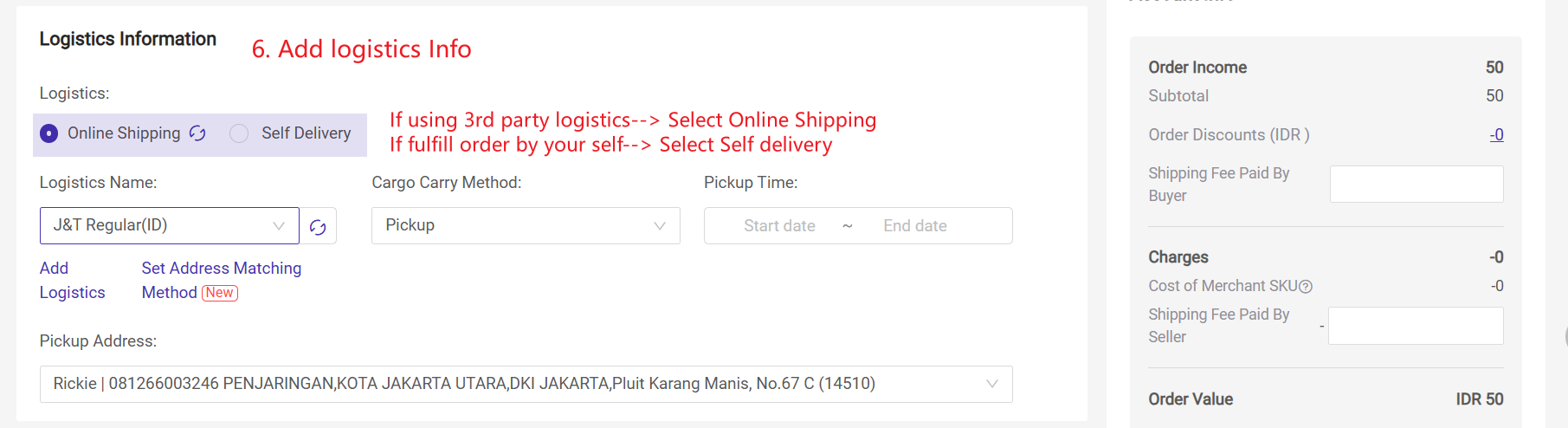 Step 4: Add Logistics Information