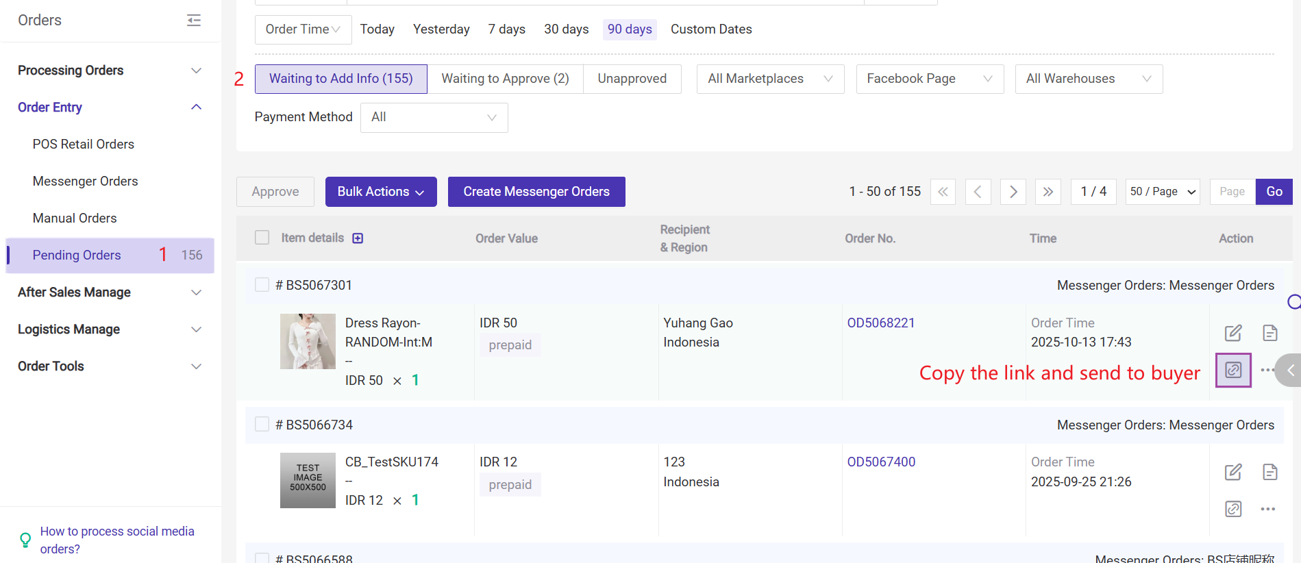 With the Messenger Orders feature, you can quickly create an order link in BigSeller and share it with buyers via social media or private chat. Once the buyer places an order, you can view and process it in BigSeller, improving multi-channel order efficiency.