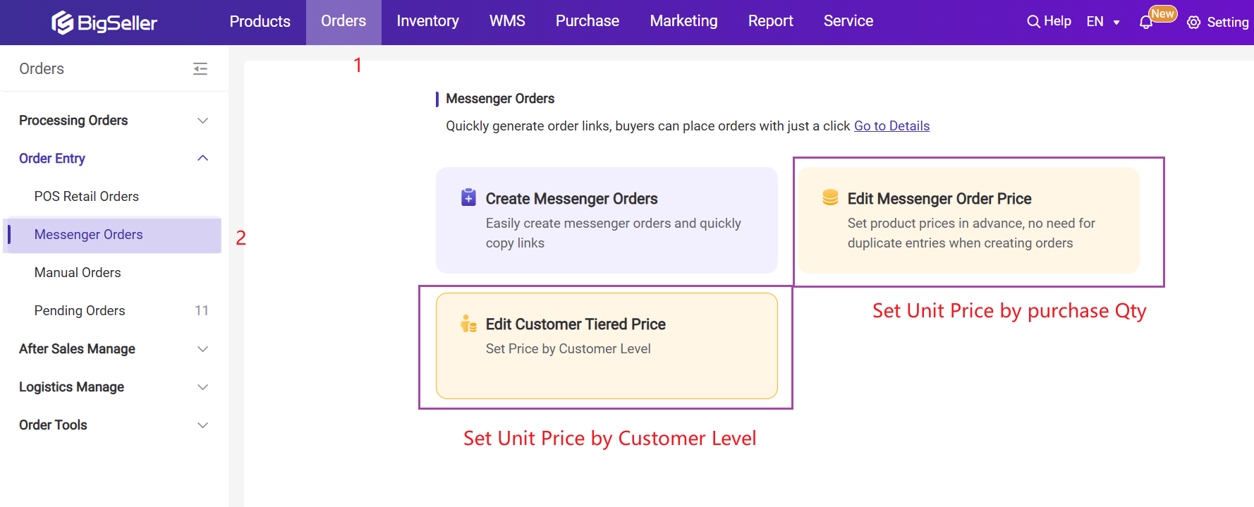 - After setting the messenger order price or customer tiered price, BigSeller will automatically fill in the product price when creating the messenger order;