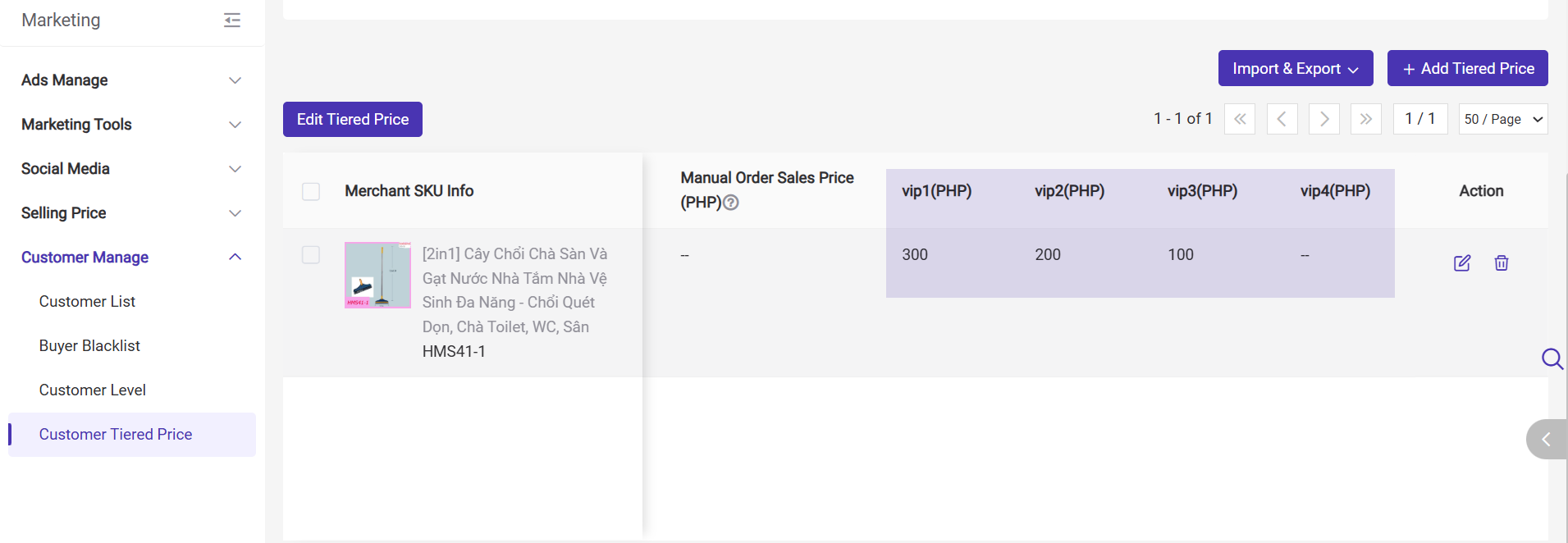 2) Edit Customer Tiered Price: Set the selling price according to the buyer’s customer level.
