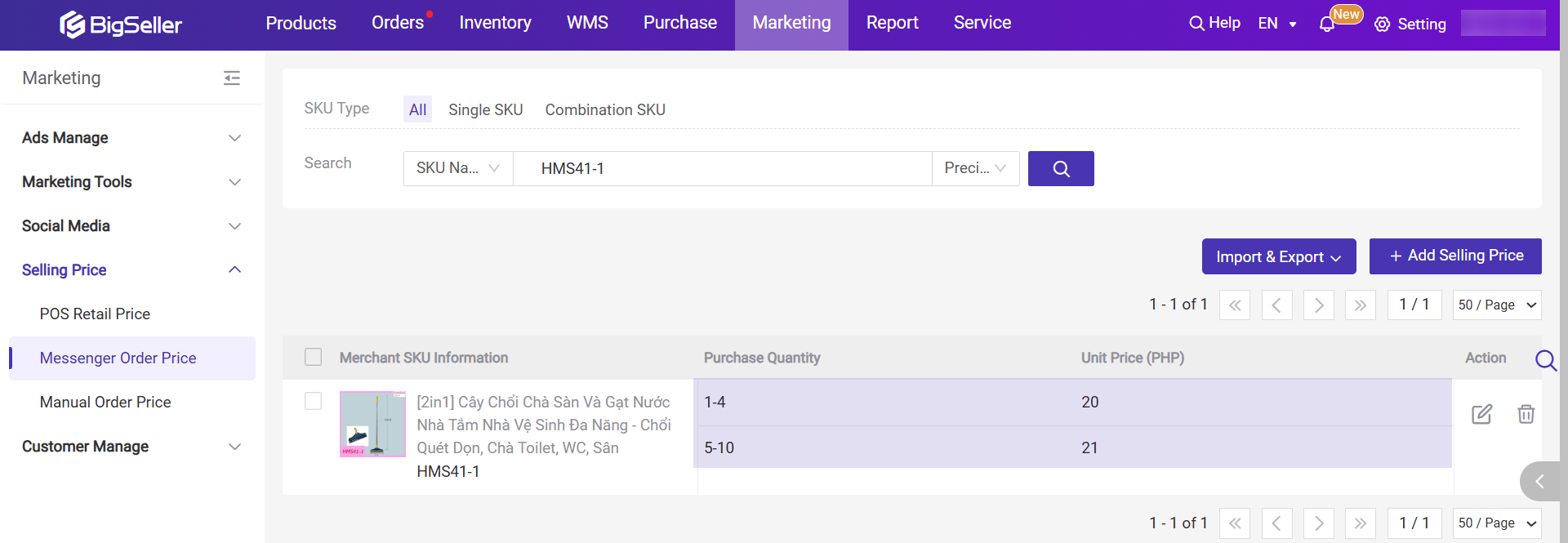 1) Edit Messenger Order Price: Set the selling price based on purchase quantity range.