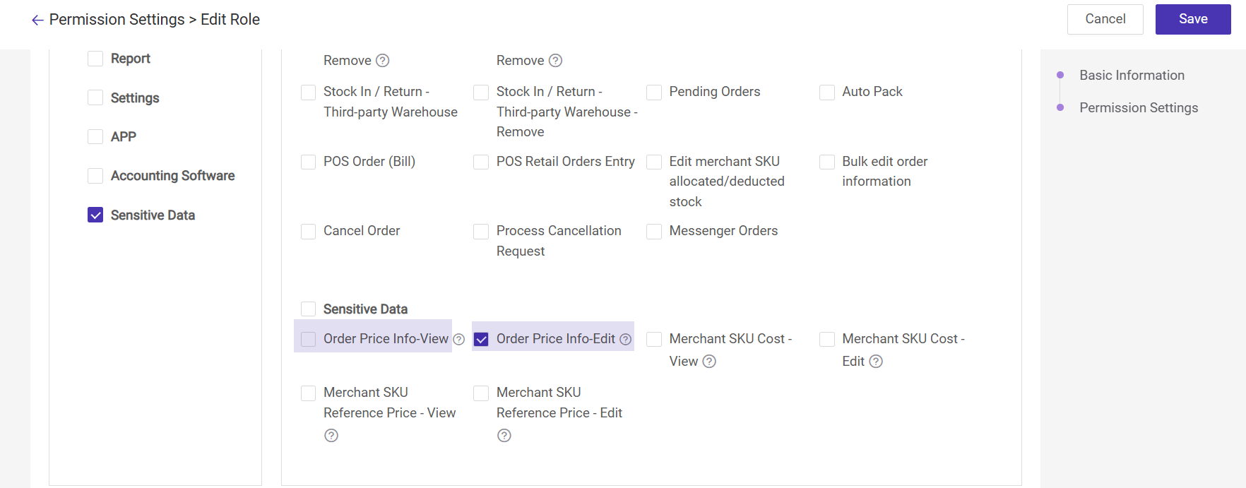 - This permission controls the display and export of information in the order module, mainly including Order Amount, Unit Price, Total Amount, and Refund Amount.