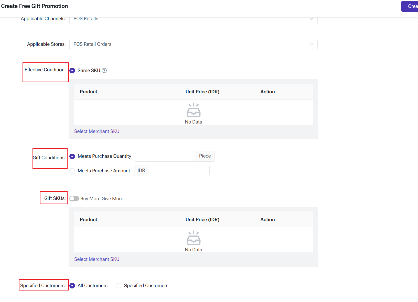 b. Gift Conditions: Based on purchase quantity or total amount.