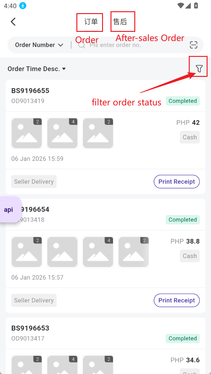 💡Note: The order status will be determined based on whether the delivery switch is enabled, if not enabled, the order status will be Completed. If enabled, the order status will be displayed under the New Orders list.