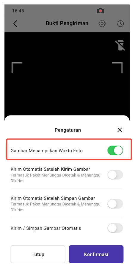 Langkah Ketiga, Klik “Bukti Pengiriman”> scan nomor Resi > Selesai berfoto > klik edit