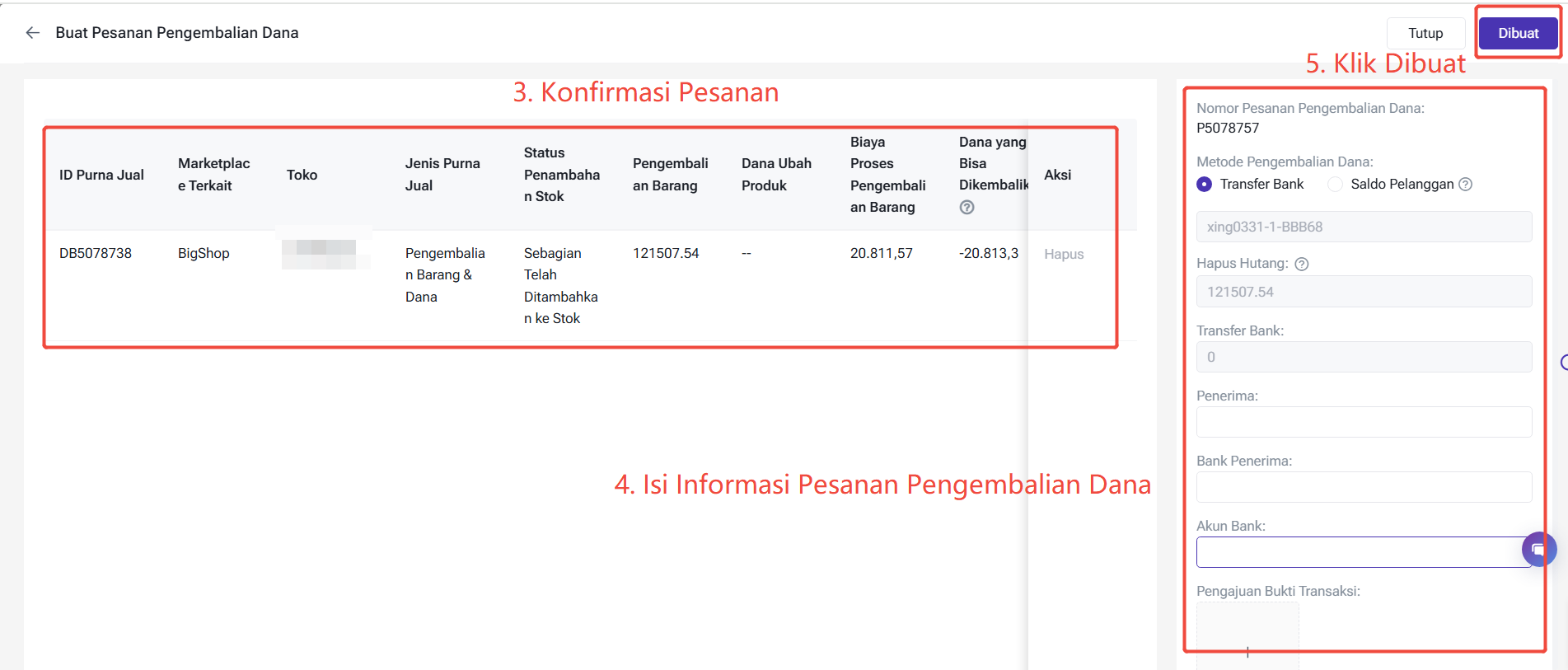 Buat Pesanan Pengembalian Dana