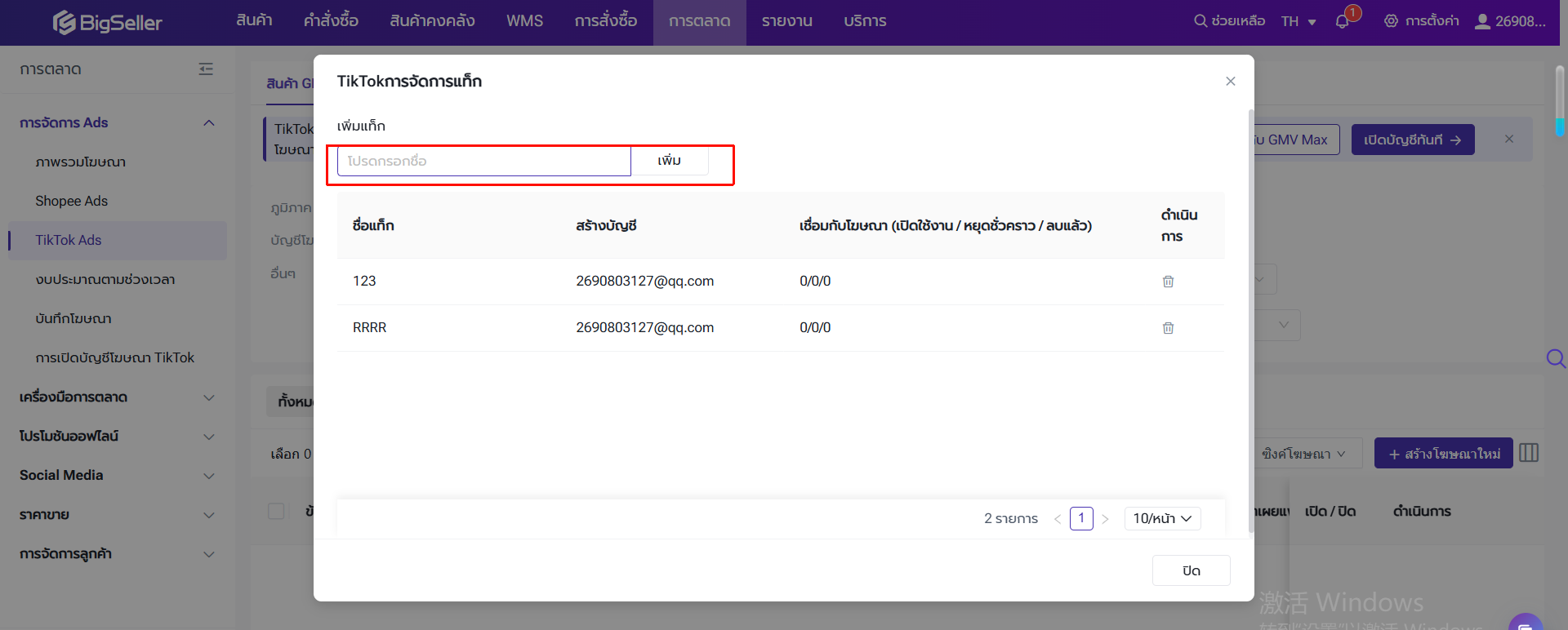 เปิดบัญชีโฆษณาผ่าน BigSeller