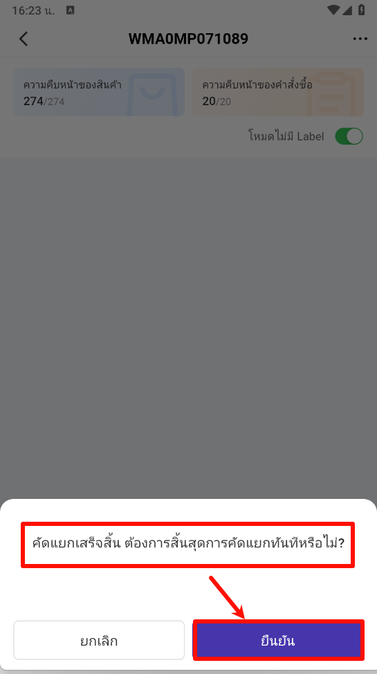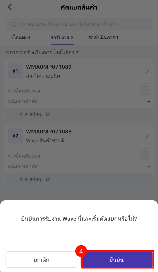 หลังจากคัดแยกสินค้าเสร็จสิ้นของ Wave นั้น ให้คลิกปุ่ม "ยืนยัน"
