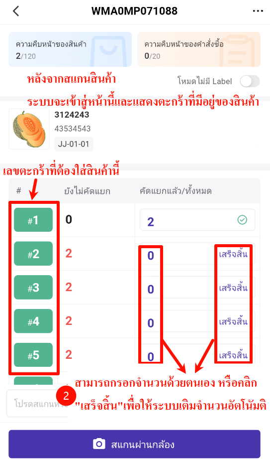 ขั้นตอนที่ 2 สแกนบาร์โค้ด SKU เพื่อเริ่มดำเนินการคัดแยกสินค้า