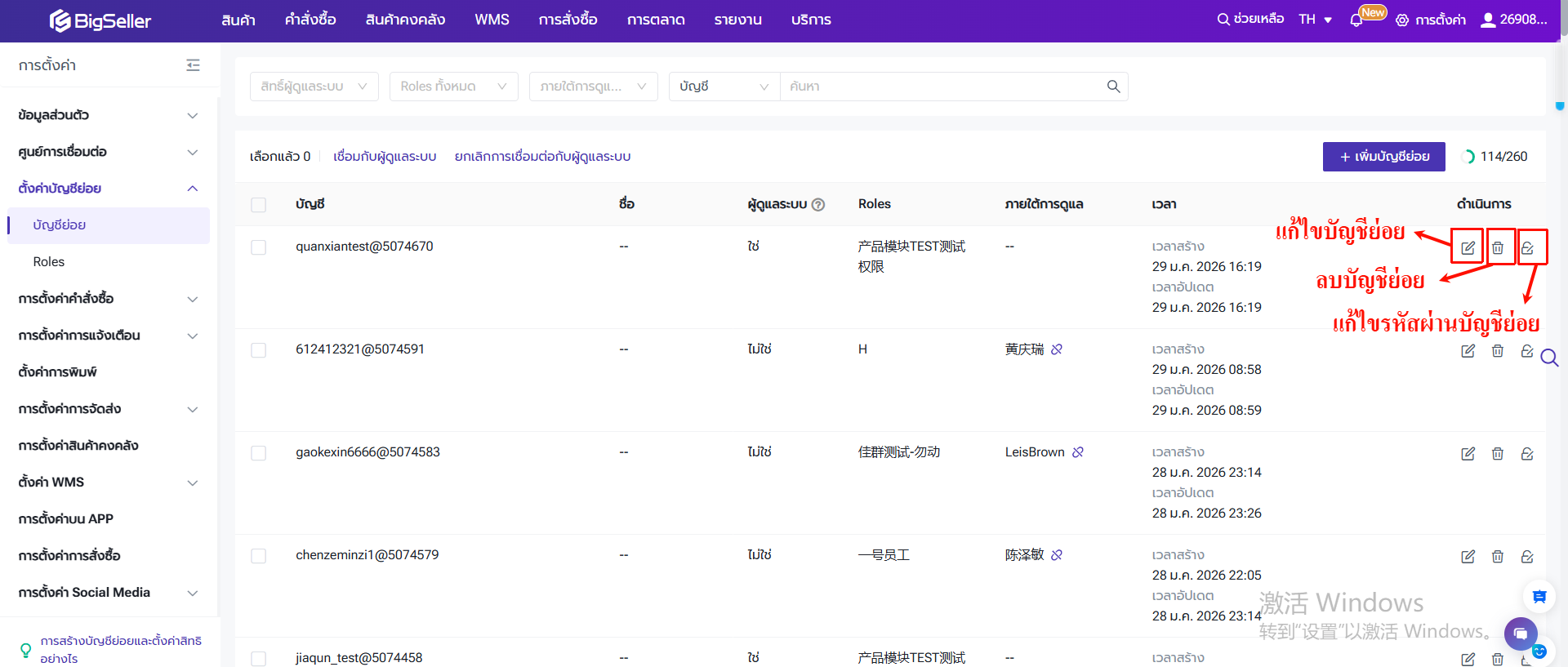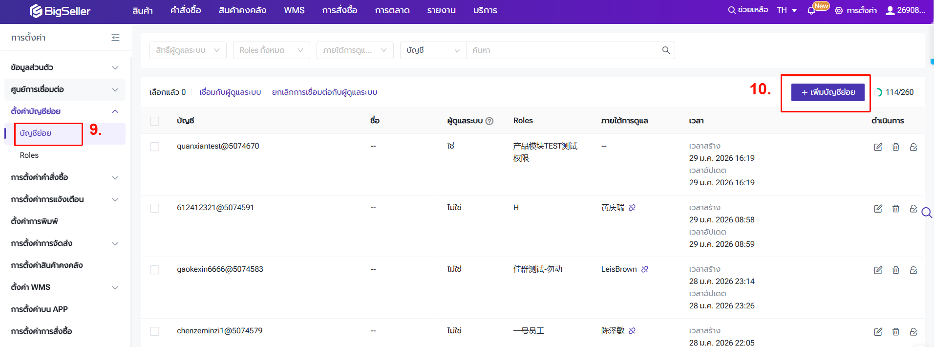 ขั้นตอนที่ 2 เพิ่มบัญชีย่อยและตั้งค่าสิทธิ์เข้าถึงร้านค้า คลังสินค้า และ SKU Merchant ของบัญชีย่อย