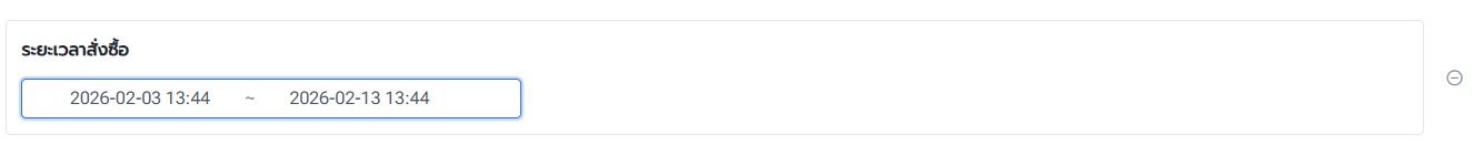 2.4 ระยะเวลาสั่งซื้อ: ใช้กับคำสั่งซื้อที่มีเวลาสั่งซื้ออยู่ระหว่างระยะเวลาที่กำหนด