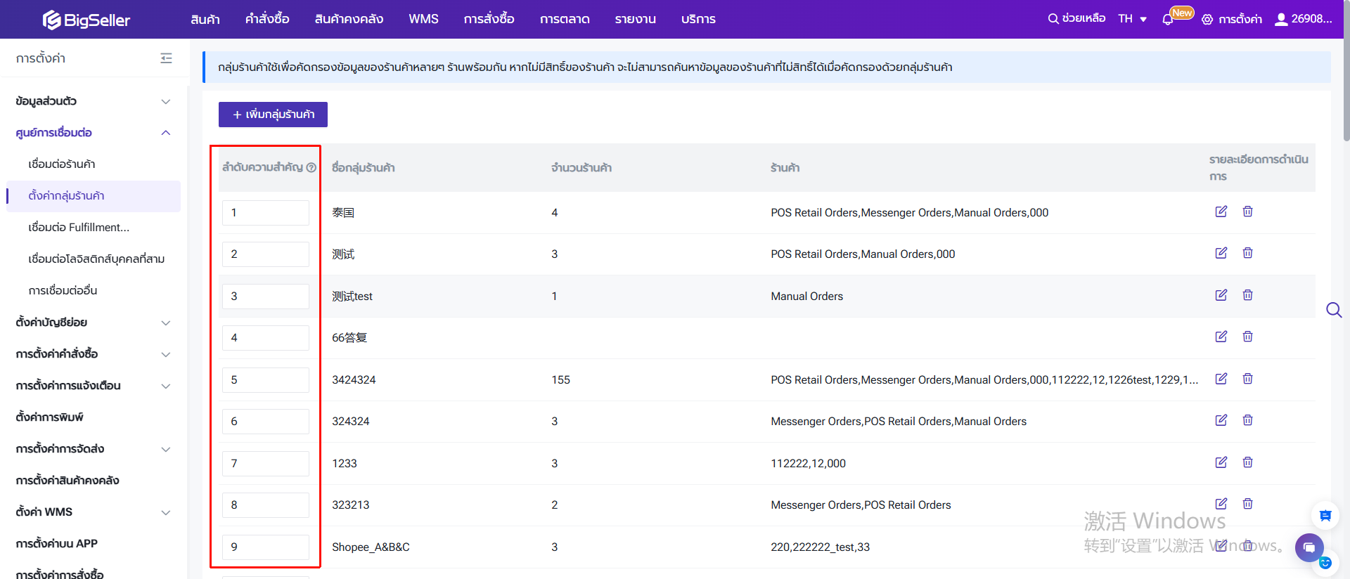 ผู้ใช้งานสามารถแก้ไขลำดับความสำคัญของกลุ่มร้านค้าได้