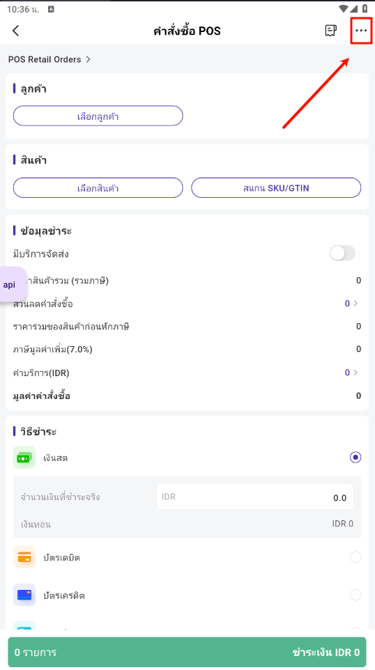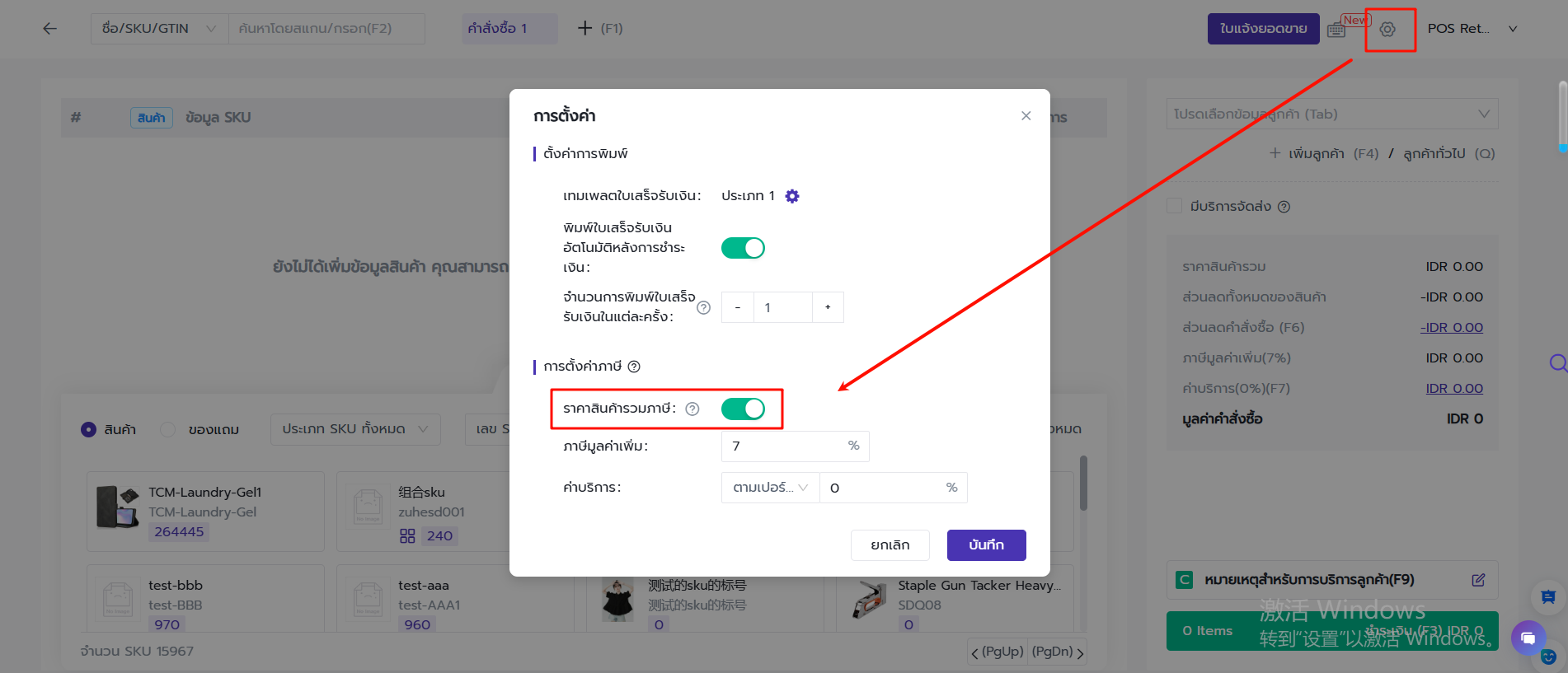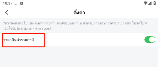 สร้างคำสั่งซื้อ POS > การตั้งค่า > เปิดสวิตช์ "ราคาสินค้ารวมภาษี"