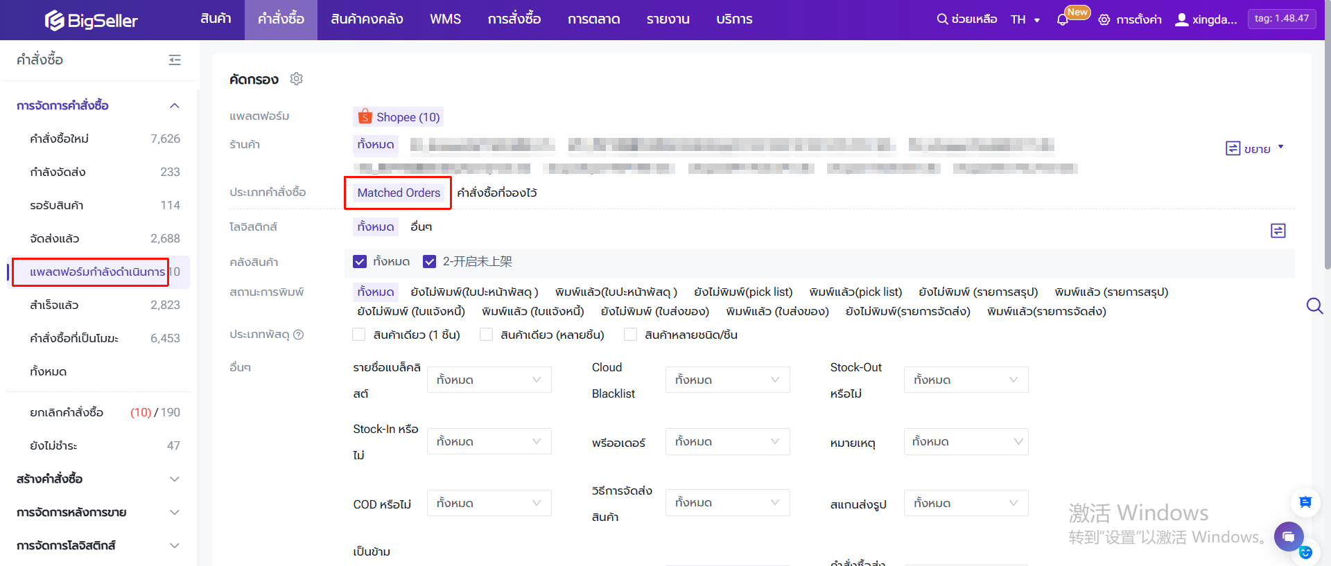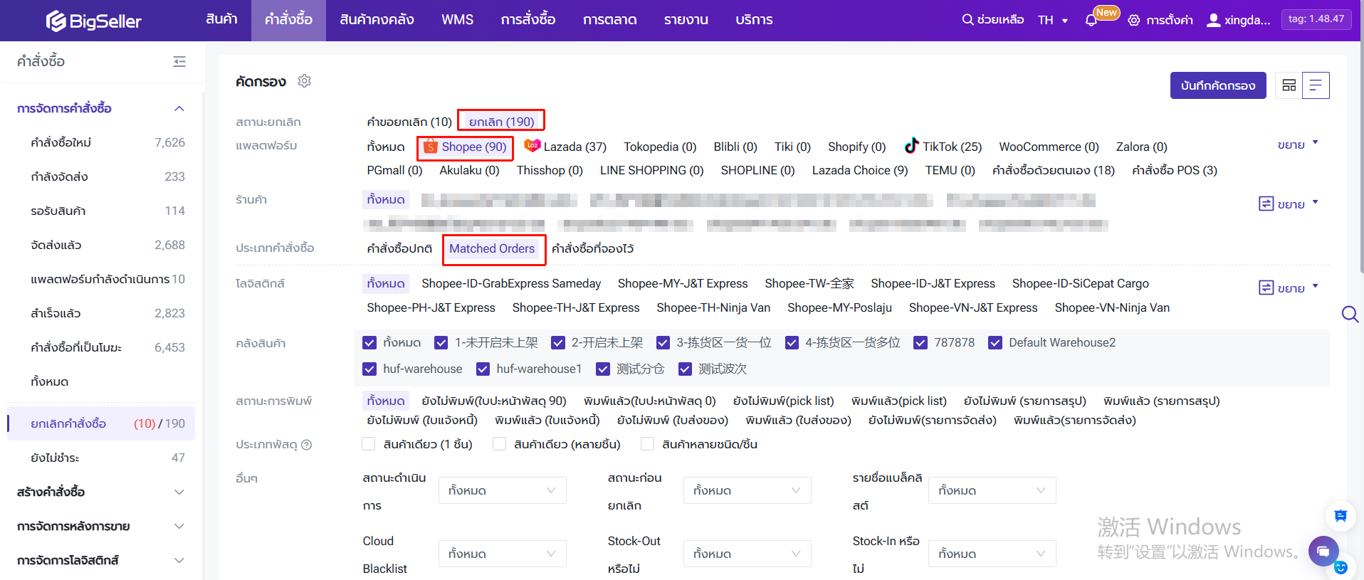 ไปยังเมนู ยกเลิก > Shopee > Matched Orders