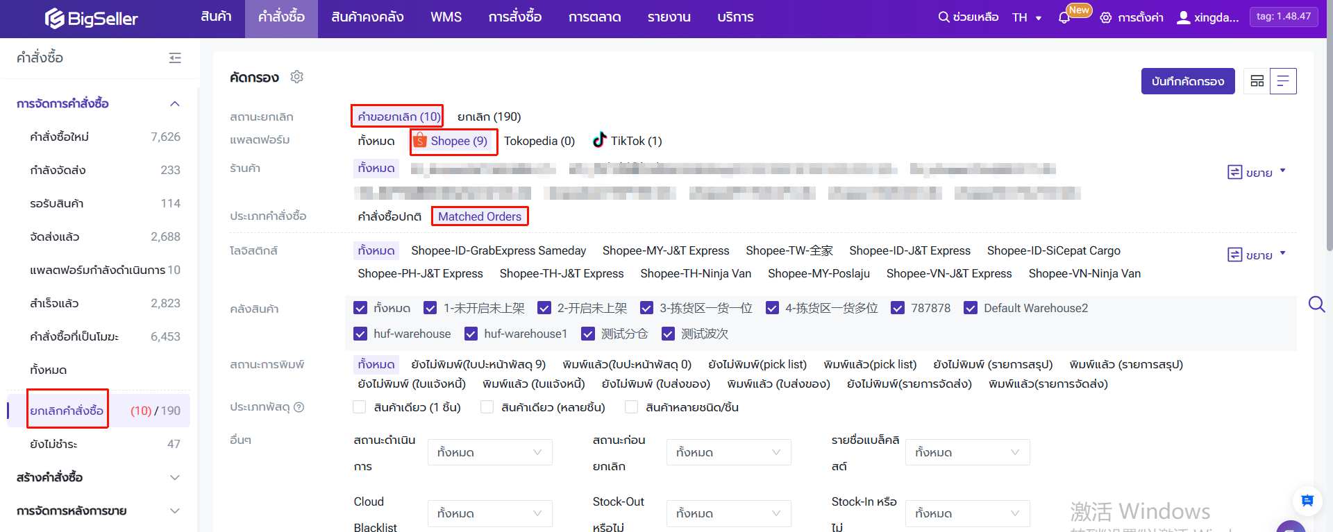 ไปยังหน้า "ยกเลิกคำสั่งซื้อ" > คำขอยกเลิก > Shopee > Matched Orders