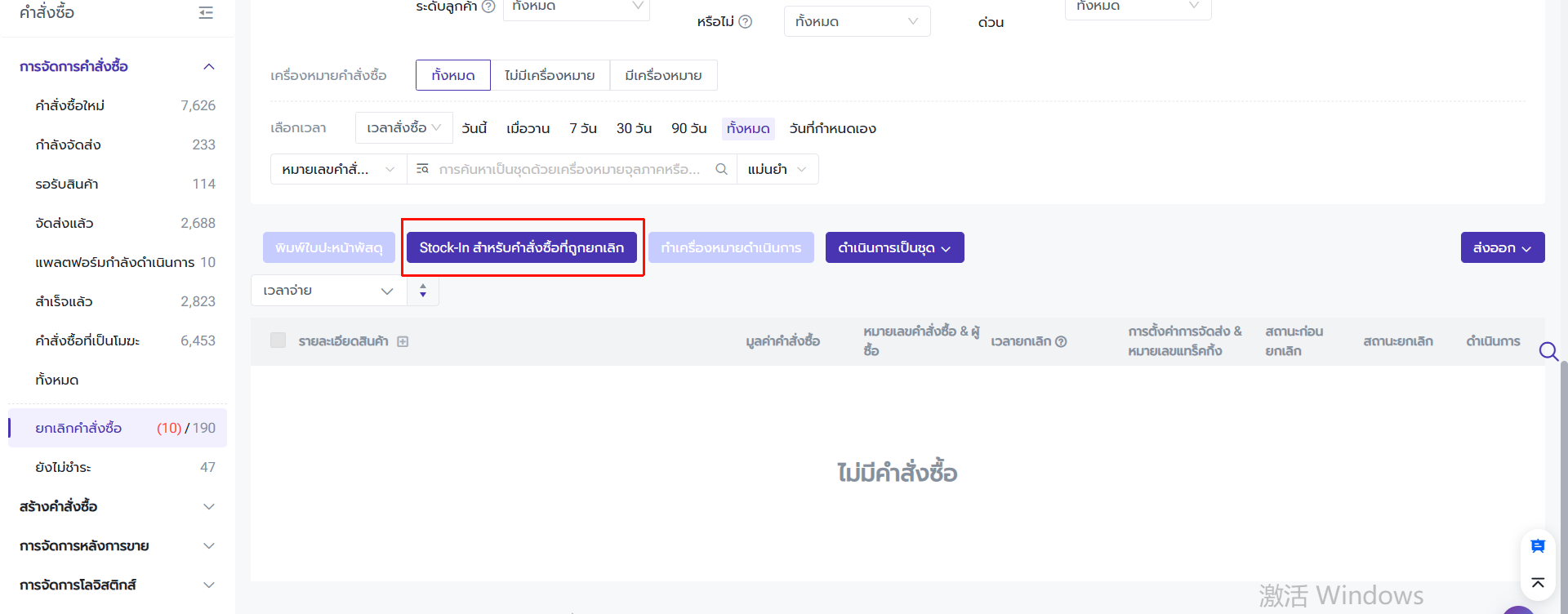 ดำเนินการ Stock-in สำหรับคำสั่งซื้อที่ถูกยกเลิก