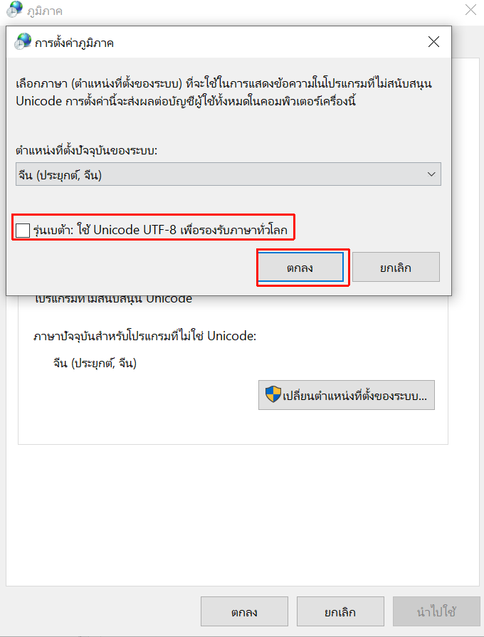 ปิด "รุ่นเบต้า: ใช้ Unicode UTF-8 เพื่อรองรับภาษาทั่วโลก"