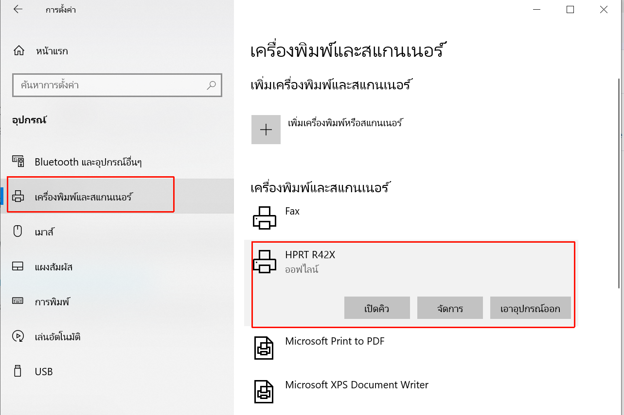 ไปยัง "เครื่องพิมพ์และสแกนเนอร์" ของระบบคอมพิวเตอร์ > เลือกเครื่องพิมพ์