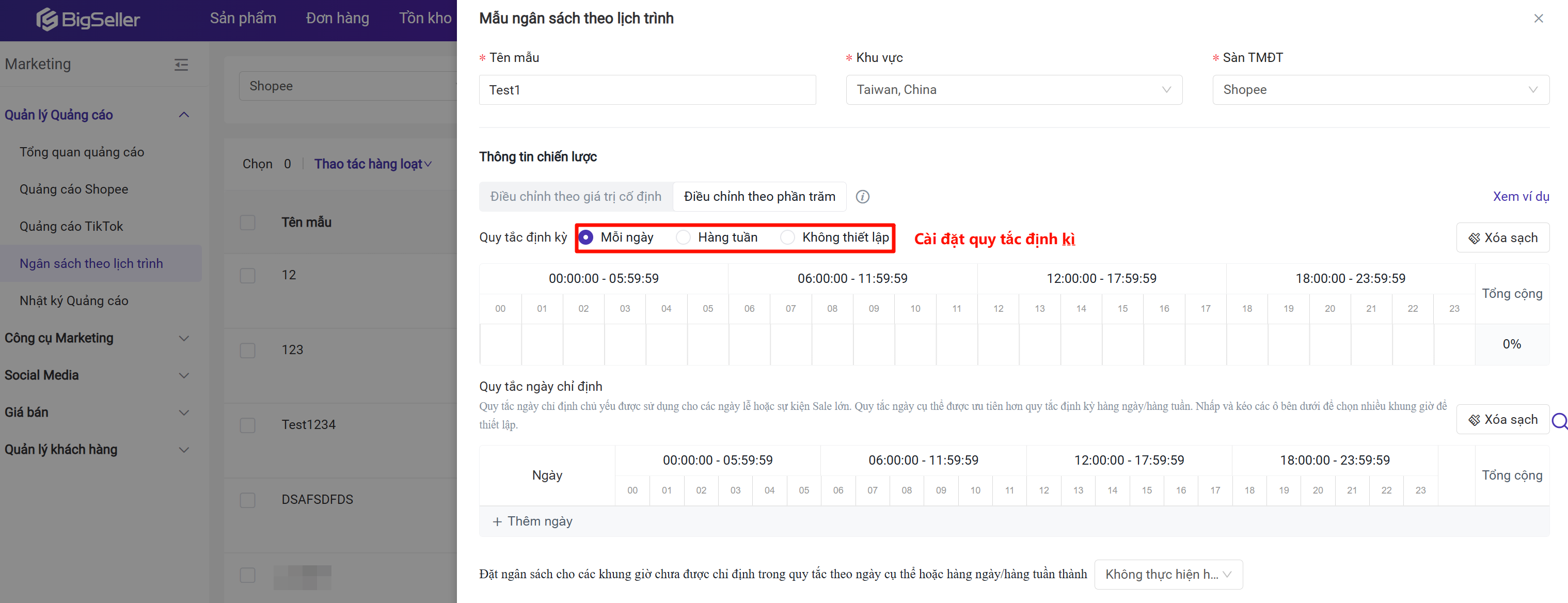 Ngân sách Theo Lịch Trình là một công cụ tự động hóa, được BigSeller phát triển nhằm giải quyết triệt để vấn đề trên. Tính năng này cho phép Người bán thiết lập trước các quy tắc, giúp hệ thống tự động điều chỉnh ngân sách quảng cáo của bạn trên Shopee và TikTok theo các khung giờ cụ thể trong ngày hoặc theo sự kiện đã định.