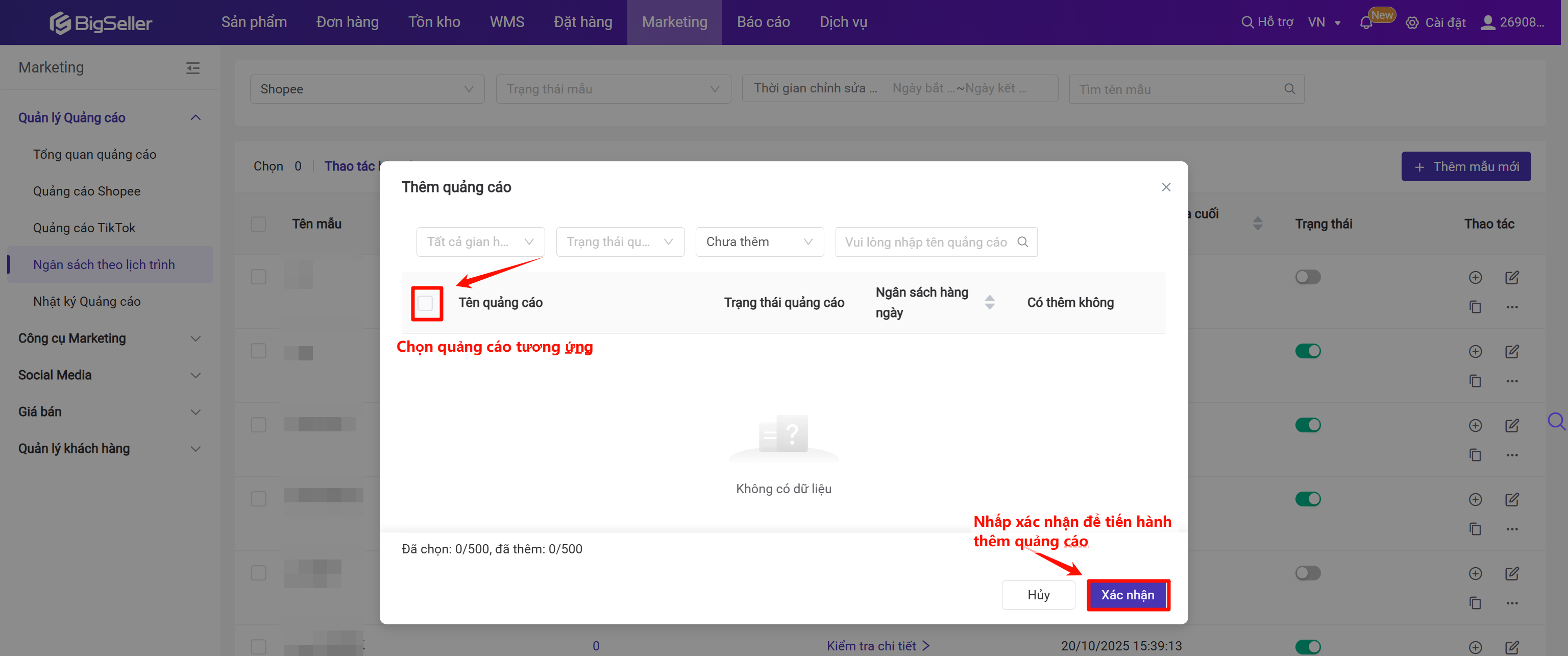Người dùng có quyền Quản lý quảng cáo Shopee sẽ tự động có quyền truy cập nền tảng Shopee trong tính năng Ngân sách theo lịch trình.
