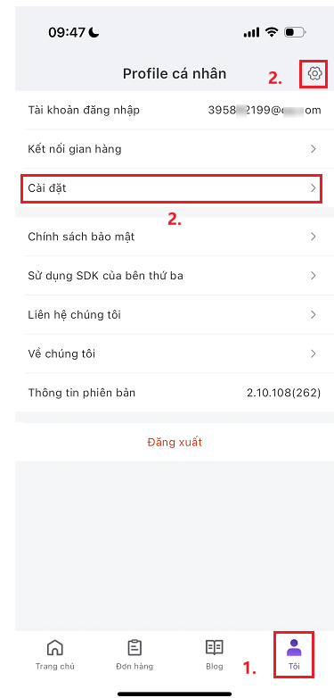 Bước 1: Bấm Tôi> Bấm nút cài đặt hoặc chữ Cài đặt> Chọn Cài đặt thông báo> Bật nút Thông báo đơn hàng mới