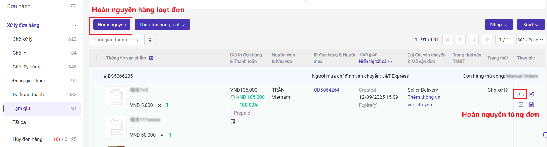 Bước 3: Hoàn nguyên đơn hàng và xử lý tiếp