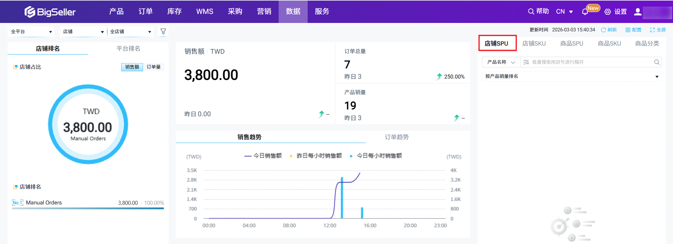 支持筛选平台店铺,可通过筛选,查看指定平台、店铺的实时销售数据。