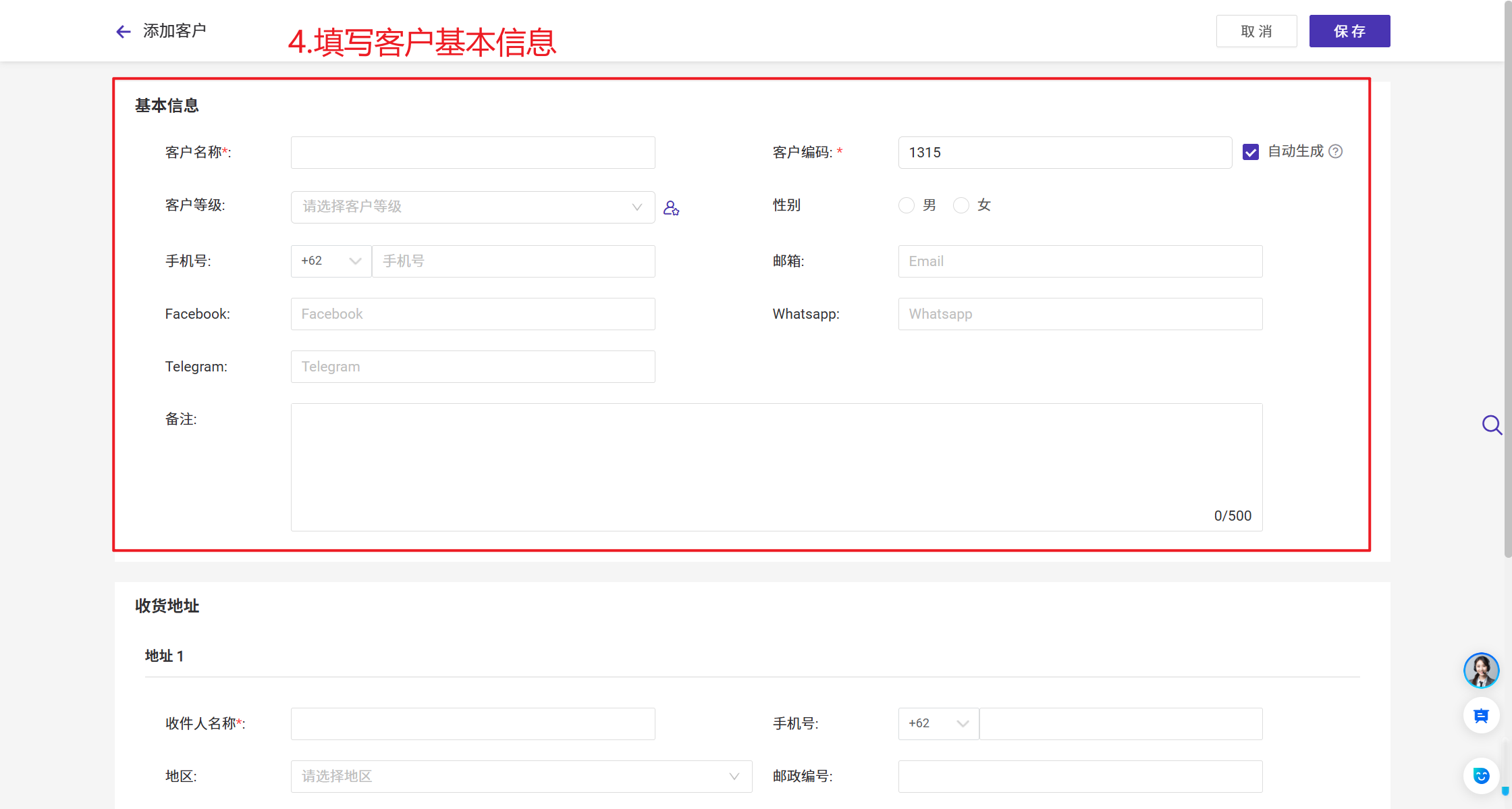 自动生成:默认开启,可关闭,自动生成的规则为根据上一次创建的客户编码进行+1。