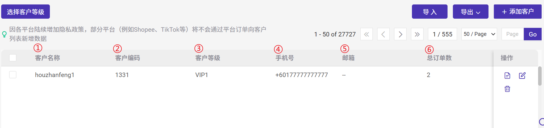 注意事项!因各平台陆续增加隐私政策,部分平台(例如shoppe、tiktok、tokopedia、lazada)将不会通过平台订单向客户列表新增数据