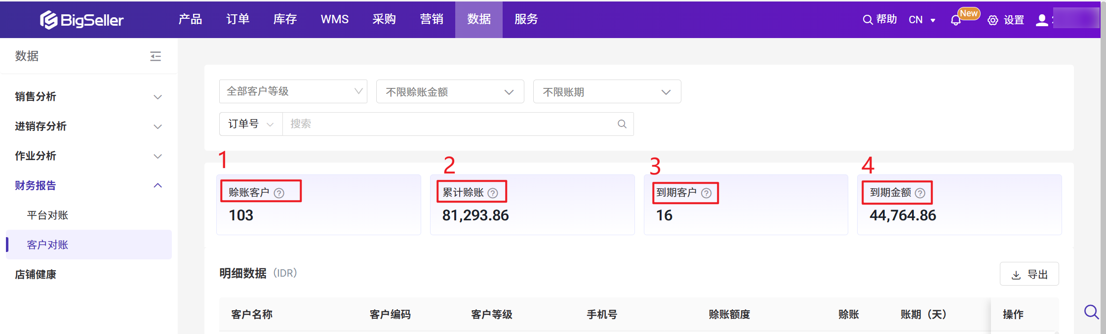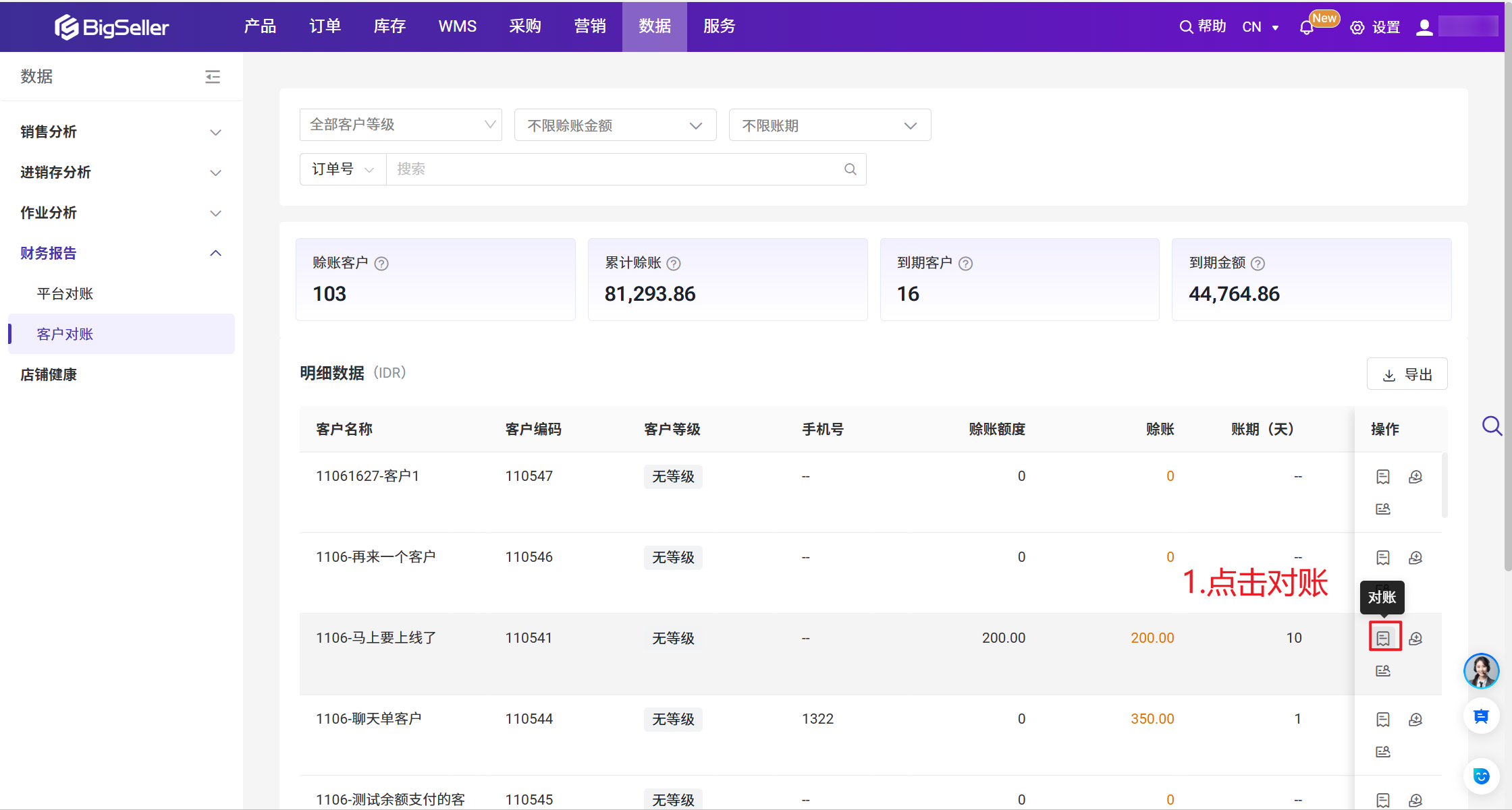 您可以在客户对账页面查看客户的赊账明细及对账信息