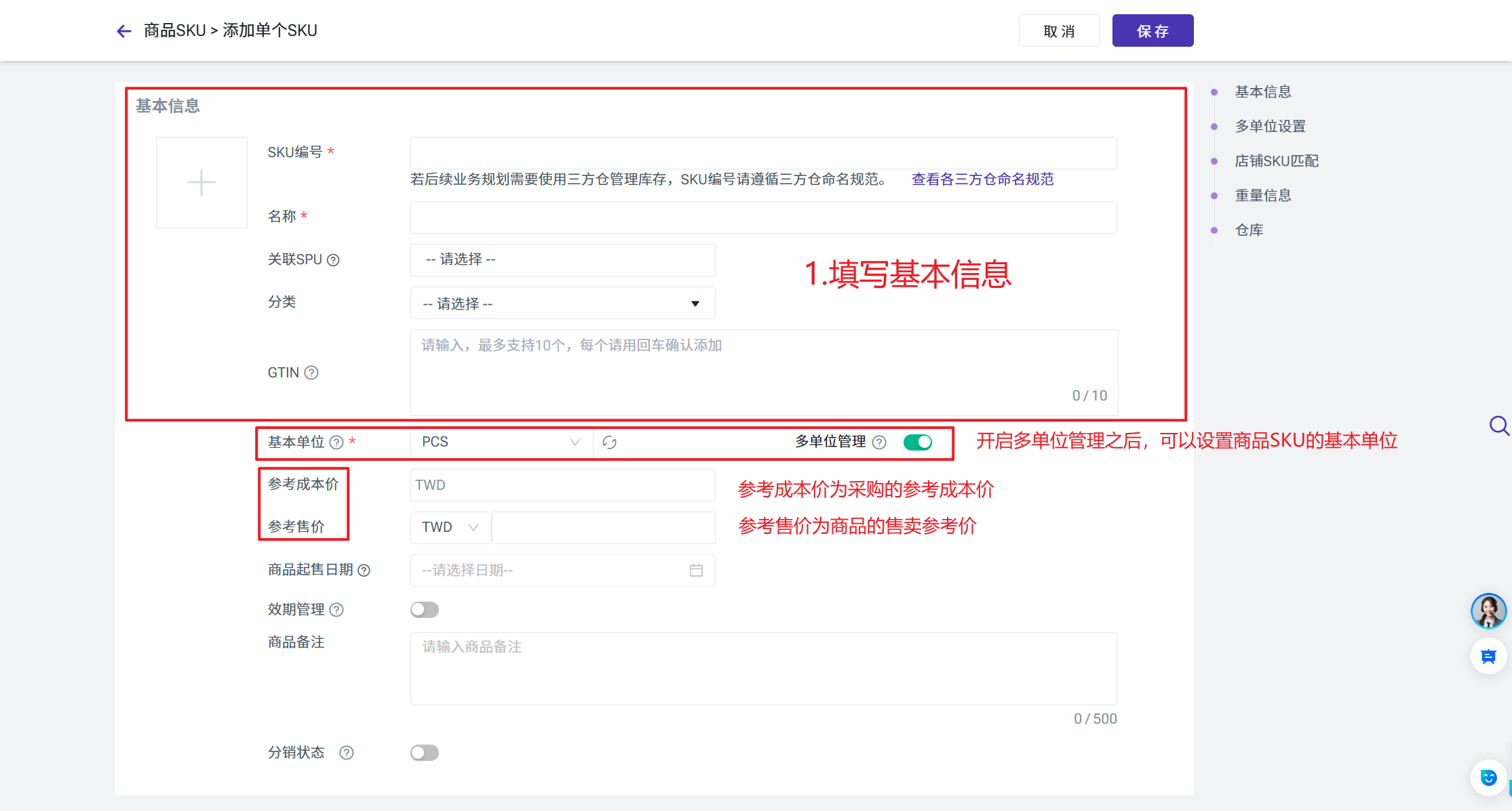 本文讲解的是如何创建单品SKU,如您需了解如何创建组合SKU,请点击此处