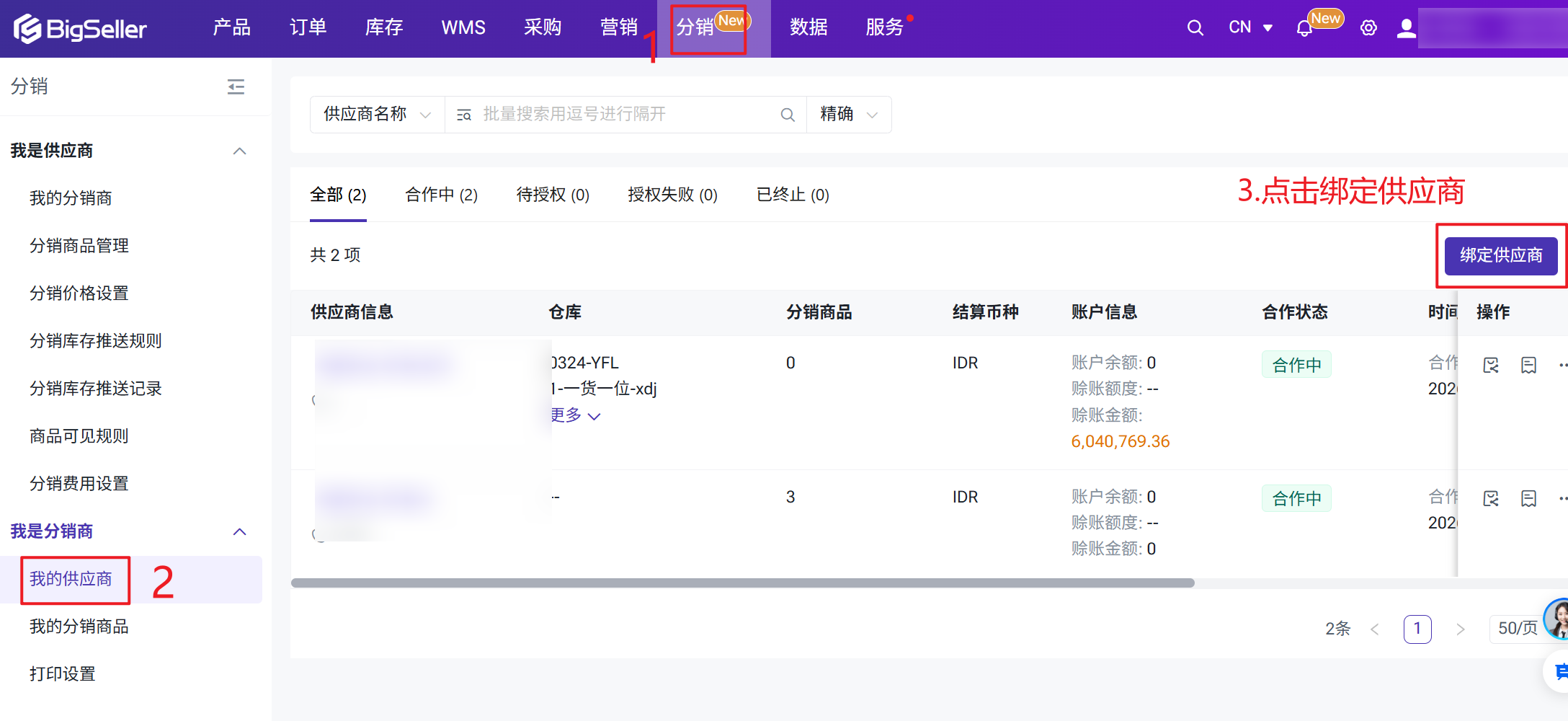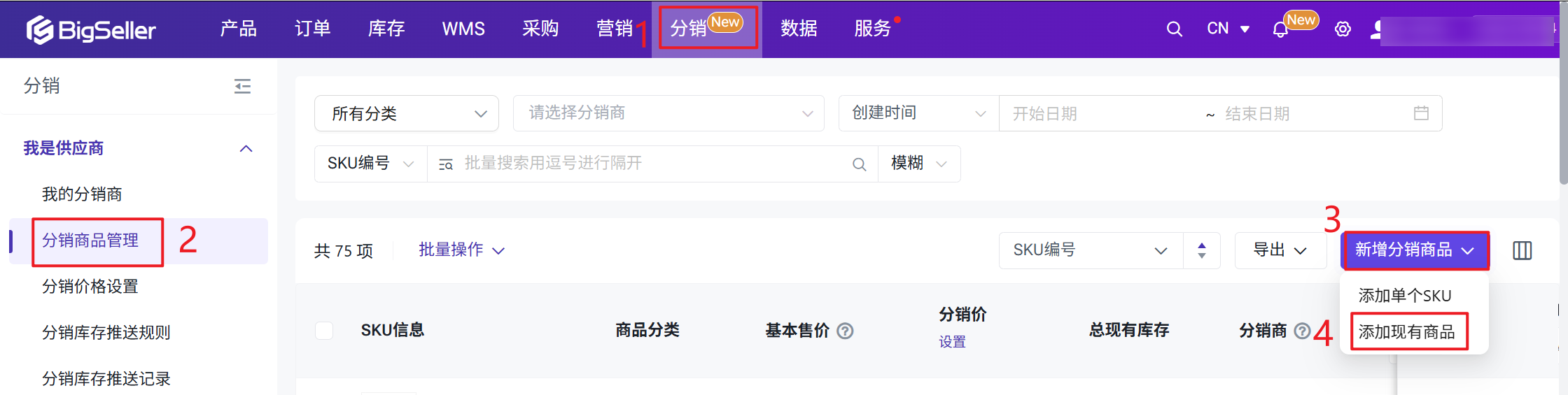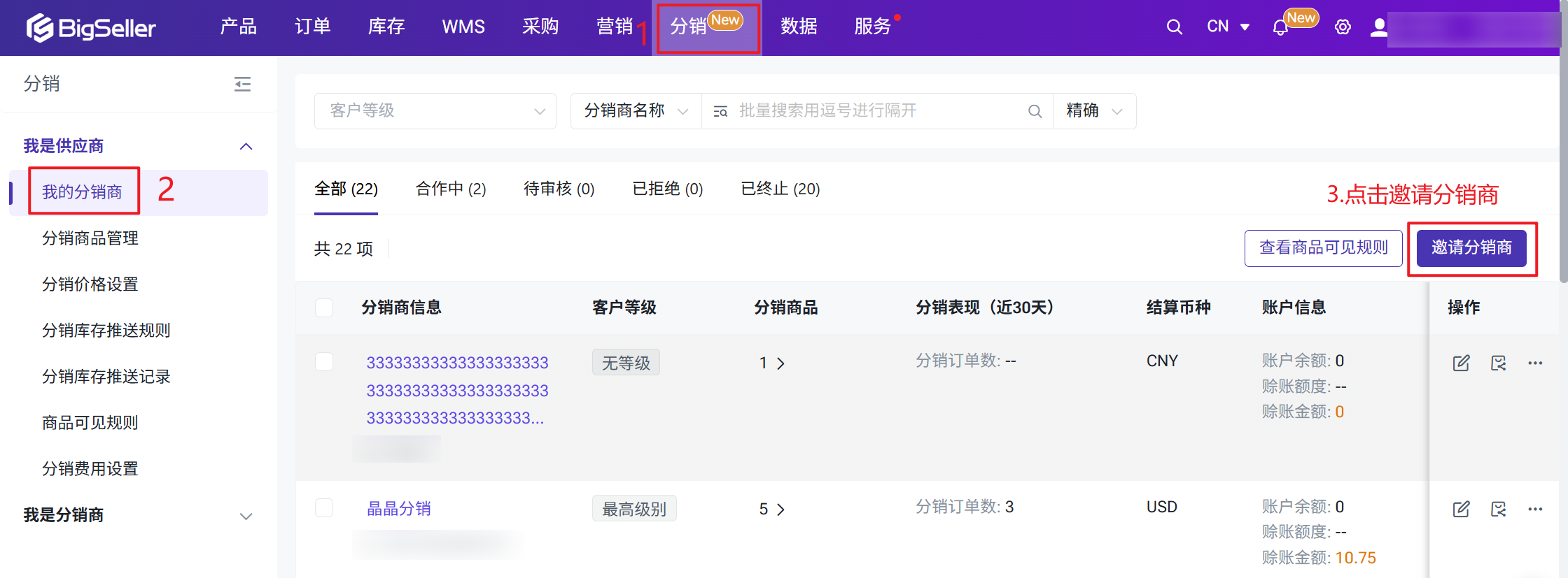 BigSeller分销功能帮助供应商在不增加仓储和运营压力的前提下,快速搭建分销渠道,系统化管理分销商建联与资质审核,灵活配置分级价格与分销费用、实时追踪分销订单履约状态,并通过自动化对账与账期管理实现资金流的透明管理。二、注意事项