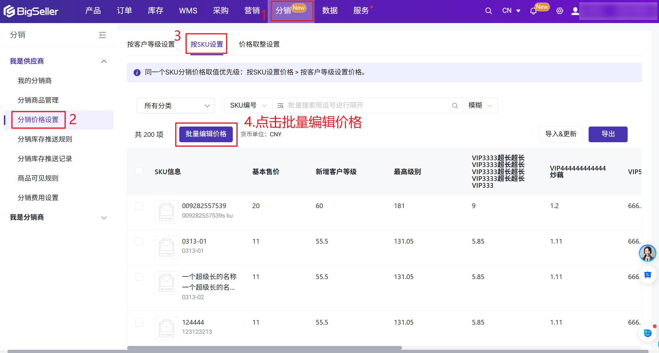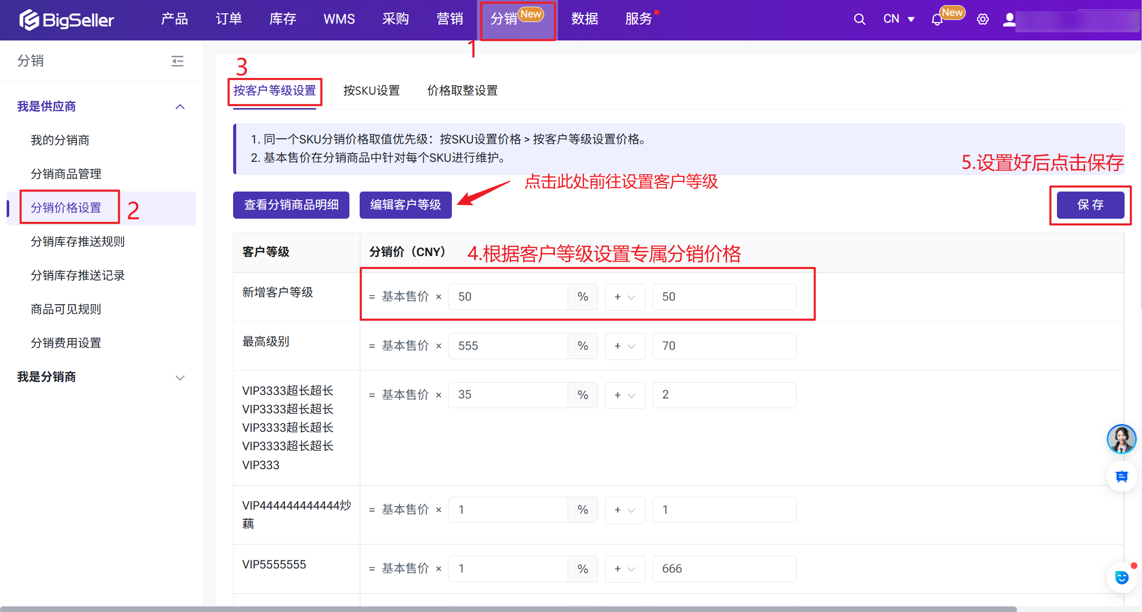 BigSeller支持按照分销商等级(1-10级)设置差异化分销价格,实现对不同层级分销商的精细化价格管控