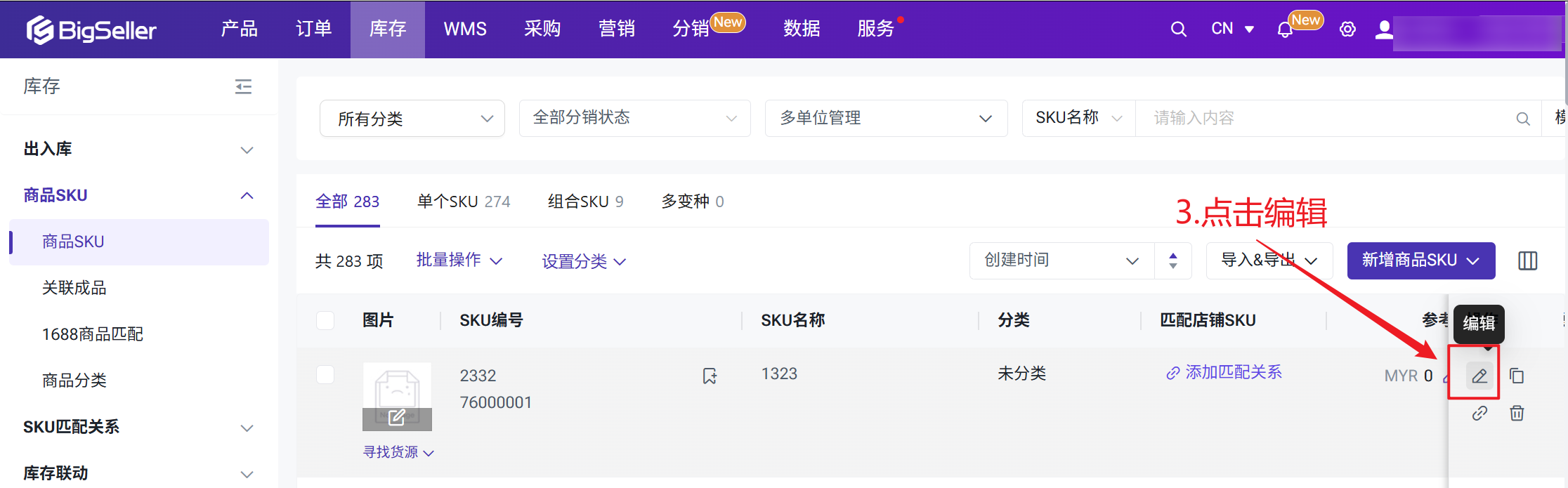 在分销商品管理页面,可以创建新的商品SKU开启分销
