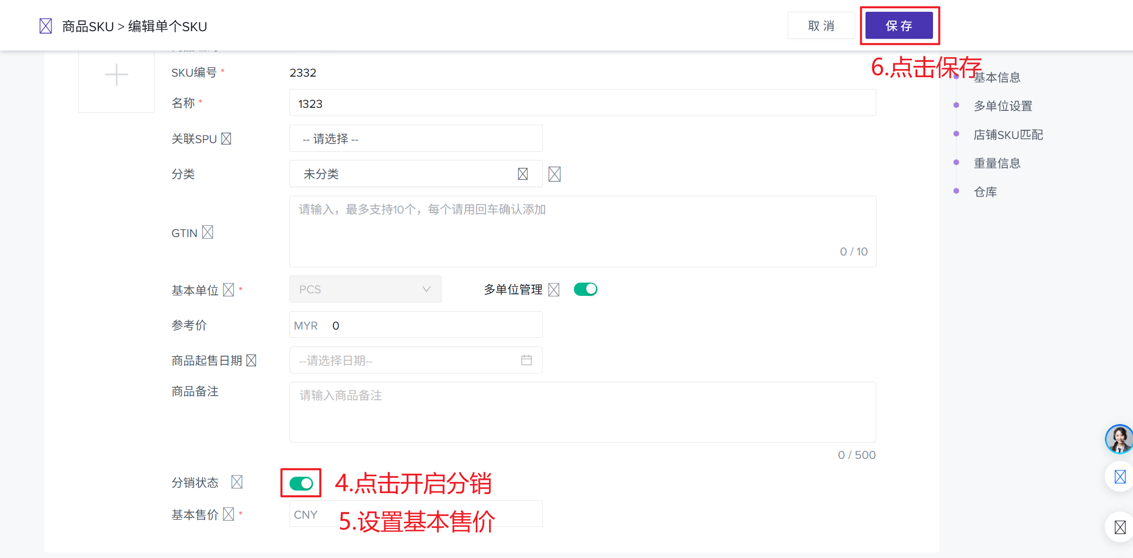 进入商品SKU详情,开启分销