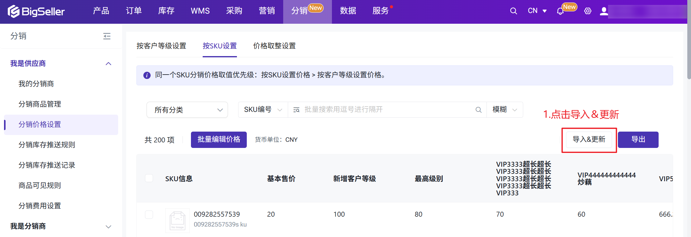 | 按SKU设置 | 对特定SKU单独指定分销价,优先级高于客户等级规则 | SKU-001:固定 9.9 USD |