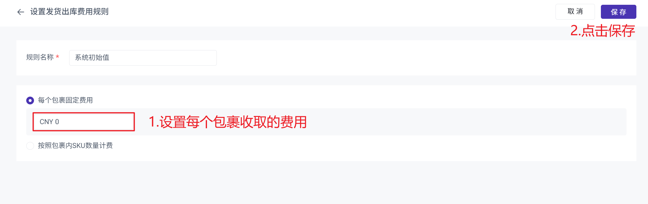 按包裹计算固定费用
