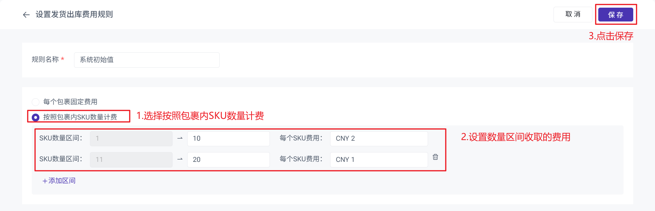 按包裹内SKU数量计费