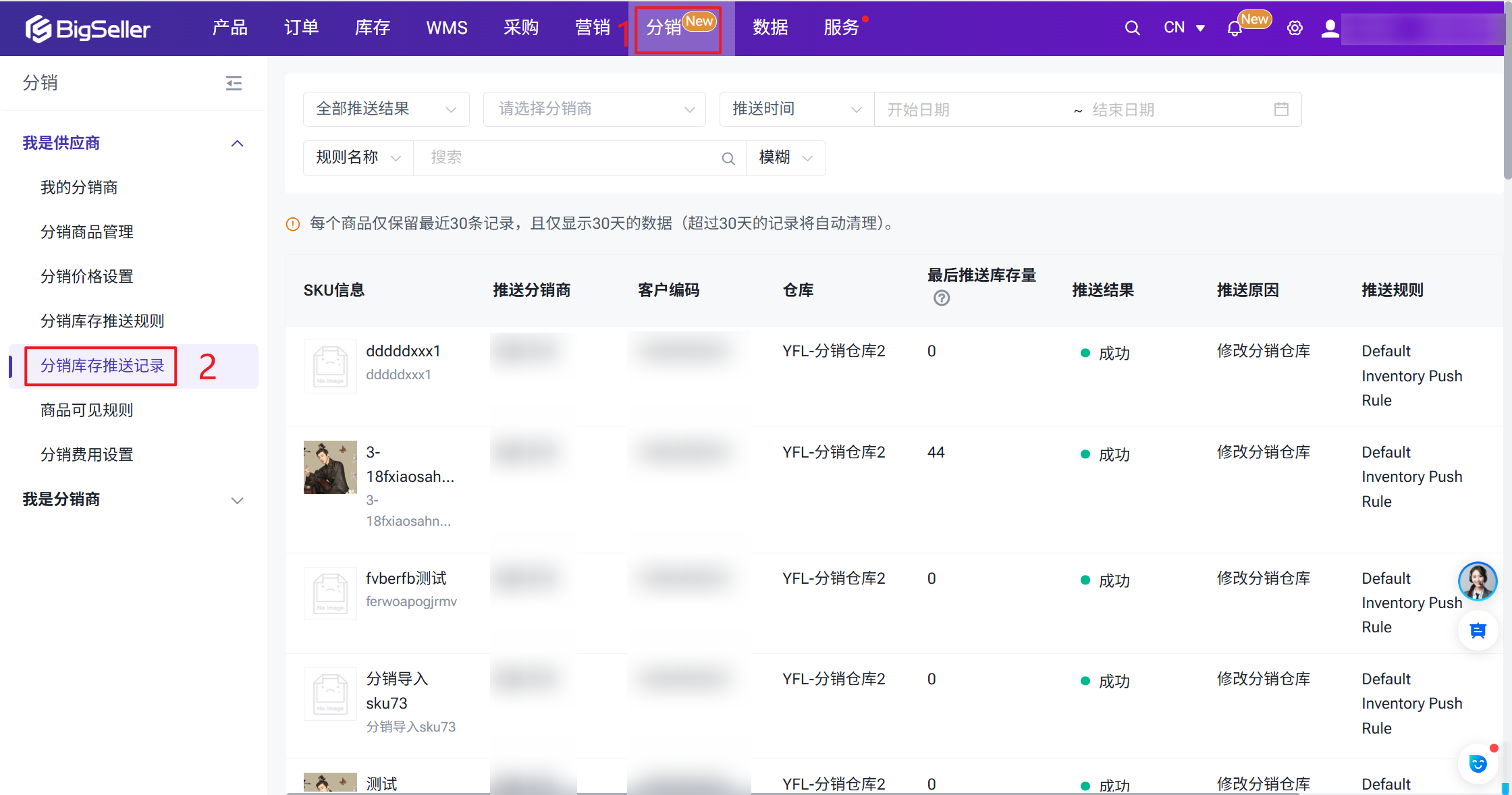 ⚠每个分销商品保留最近30条推送记录,且30条内,30天之前的记录将删除。以【分销商品 + 分销商】维度记录每次库存推送的最新结果,点击详情可查看历史推送记录。